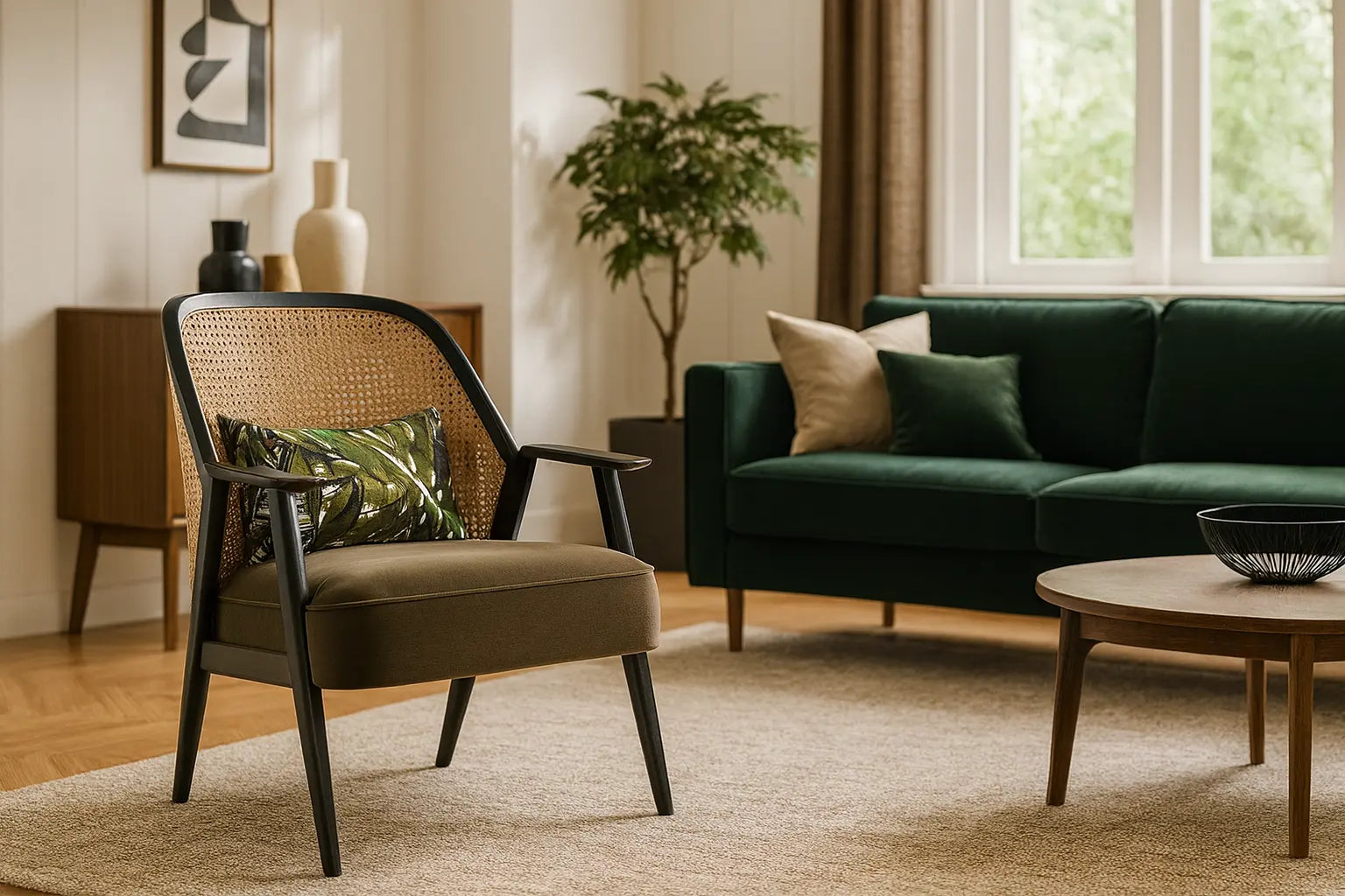 The Qienn Medieval Rattan Lounge Armchair is a luxurious blend of traditional craftsmanship and modern mid-century design. Handcrafted with natural rattan imported from Indonesia, this armchair offers exceptional breathability and comfort. The intricate rattan weaving provides a durable yet lightweight frame, making it ideal for year-round use. Its plush velvet seat cushion offers a rich contrast to the natural rattan, providing a stylish yet cozy seating option for any living space. The armchair’s sleek black solid wood frame adds a touch of sophistication, while the meticulously designed backrest ensures ergonomic support for long periods of relaxation.